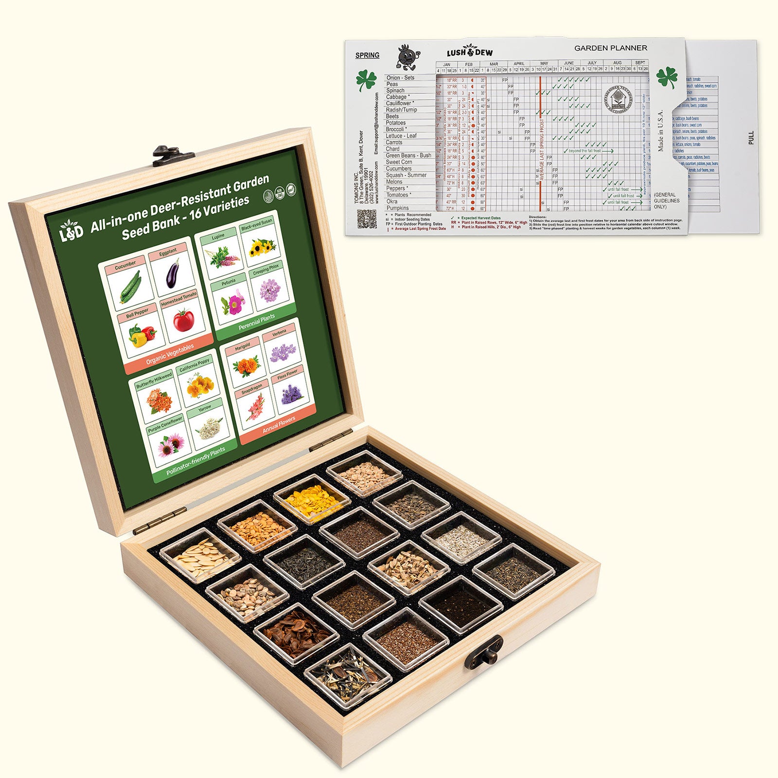 - 1 Wooden Seed Storage Box (Two colors of storage box sent randomly)