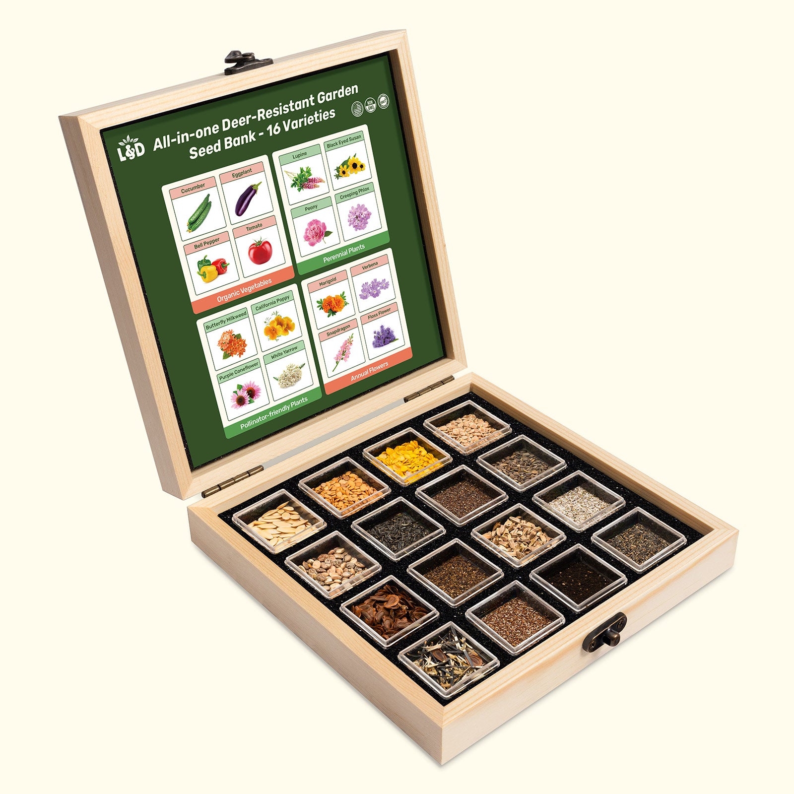 Say goodbye to deer damage and frustration! The seed bank features 16 carefully selected seed varieties known for their deer-resistant properties. From colorful flowers to sturdy perennials, these plants are less attractive to deer, allowing you to enjoy a beautiful garden without having to be constantly vigilant.