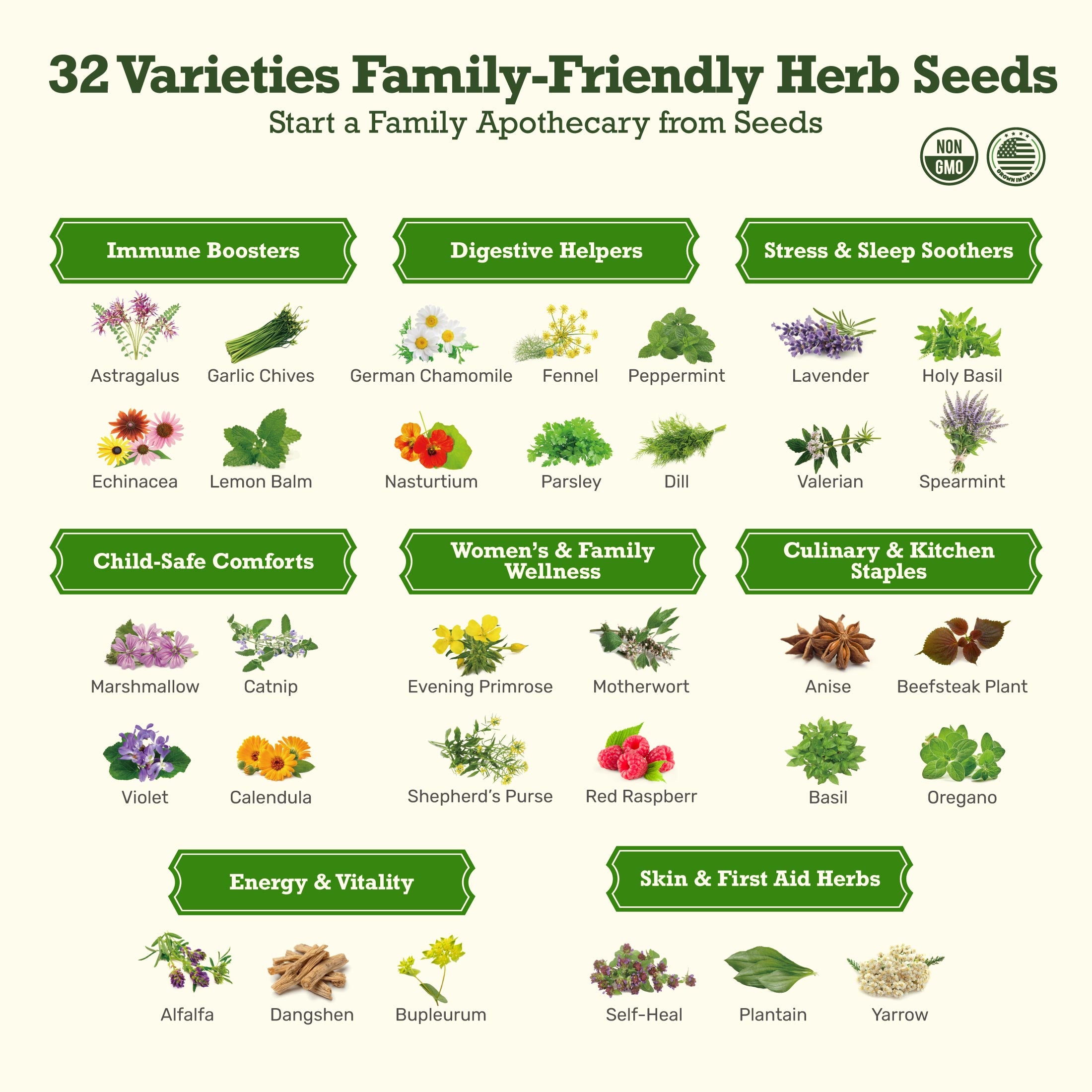 ✔️ 32 Varieties of Family-Friendly Herb Seeds